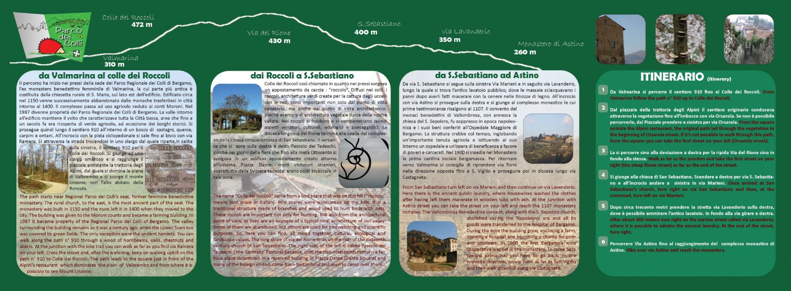 ENDING POINT:Astino's Monastery (Longuelo, Bergamo's quarter) at about 13.00 o'clock (are available public transport for coming back)