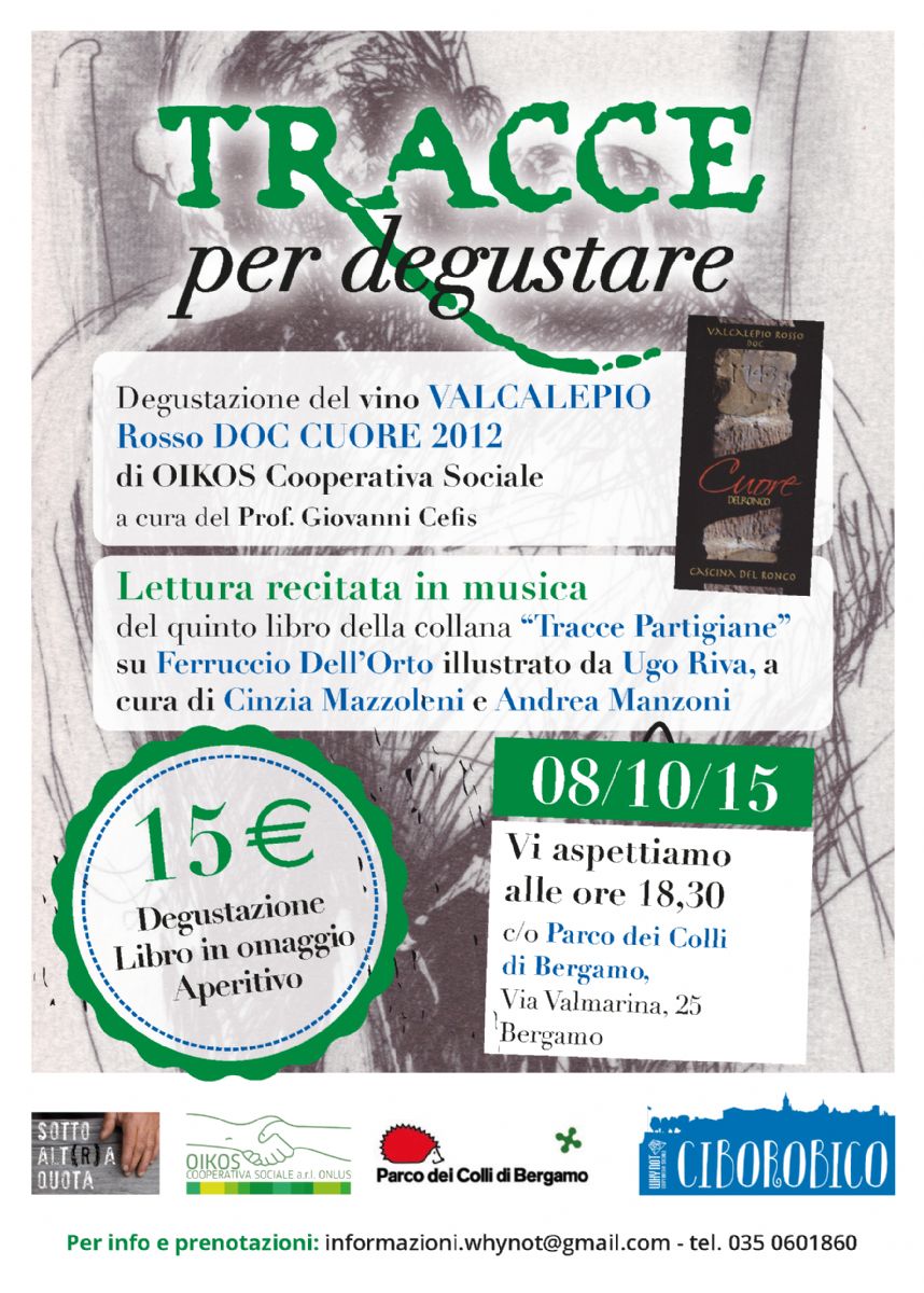 La serata prevede una degustazione del vino Valcalepio Rosso DOC CUORE 2012 di OIKOS Cooperativa Sociale di Villa d'Almè, a cura del degustatore Prof. Giovanni Cefis.