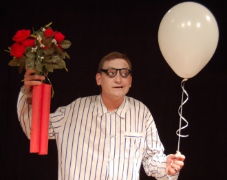 Un cartone animato in bianco e nero, un film muto con due attori in carne e ossa. Intorno a un quadrato bianco, sintesi di una casa invisibile, si danno battaglia un uomo, il suo fedele palloncino e un dispettoso uomo nero.