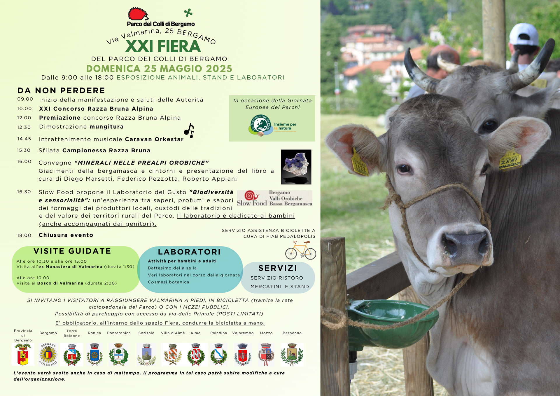 In caso di maltempo, l’evento si terrà ugualmente, con eventuali variazioni al programma che saranno comunicate dall’organizzazione (per informazioni www.parcocollibergamo.it).