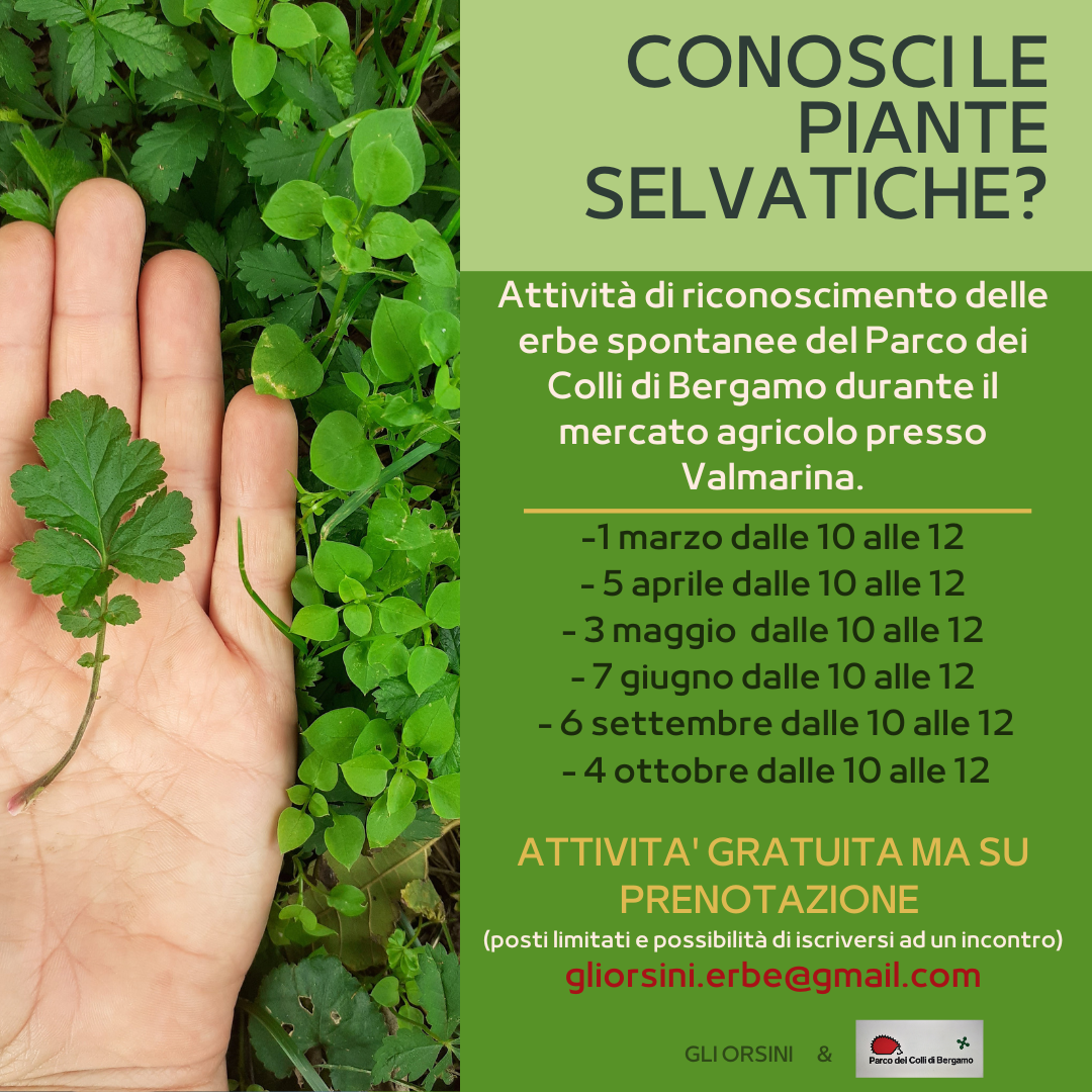 Durante il Mercato Agricolo del Parco dei Colli si svolgerà l'Attività di riconoscimento delle piante selvatiche a cura di Erica Pozzi.