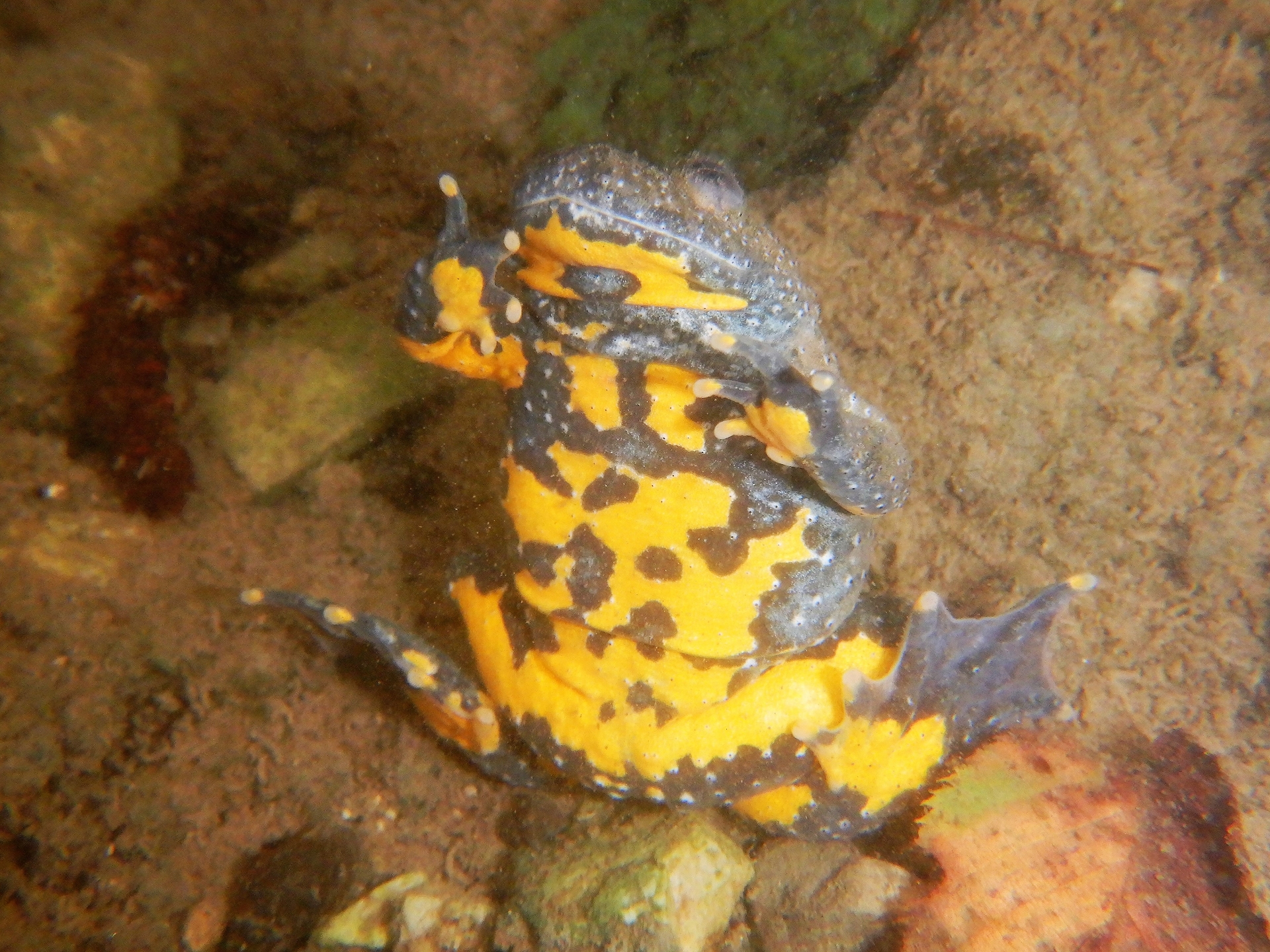 rotagonista la Bombina variegata o “Ululone dal ventre giallo”, piccolo rospo reso inconfondibile dalla pupilla a forma di cuore e dalla colorazione giallo acceso del ventre, che serve a farsi immediatamente riconoscere come specie non appetibile dai potenziali predatori.