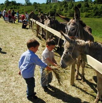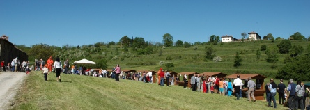 Degustazione prodotti agricoli prodotti nei dieci comuni consorziati: miele di acacia e castagno, olio, lamponi, marmellate e confetture, vino Valcalepio rosso, Pinot bianco, salumi di pecora, ortaggi biologici, formaggi caprini e di monte, la Scarola dei Colli.